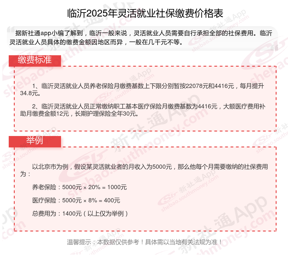 随着经济的发展和社会的进步,灵活就业人员越来越多,但是很多人不知道如何缴纳社保。本文将介绍2025年临沂灵活就业人员社保缴费基数及如何缴纳社保,能领取多少钱,帮助大家更好地了解灵活就业社保,随着新社通APP小编一起了解临沂灵活就业社保缴费最新资讯吧。