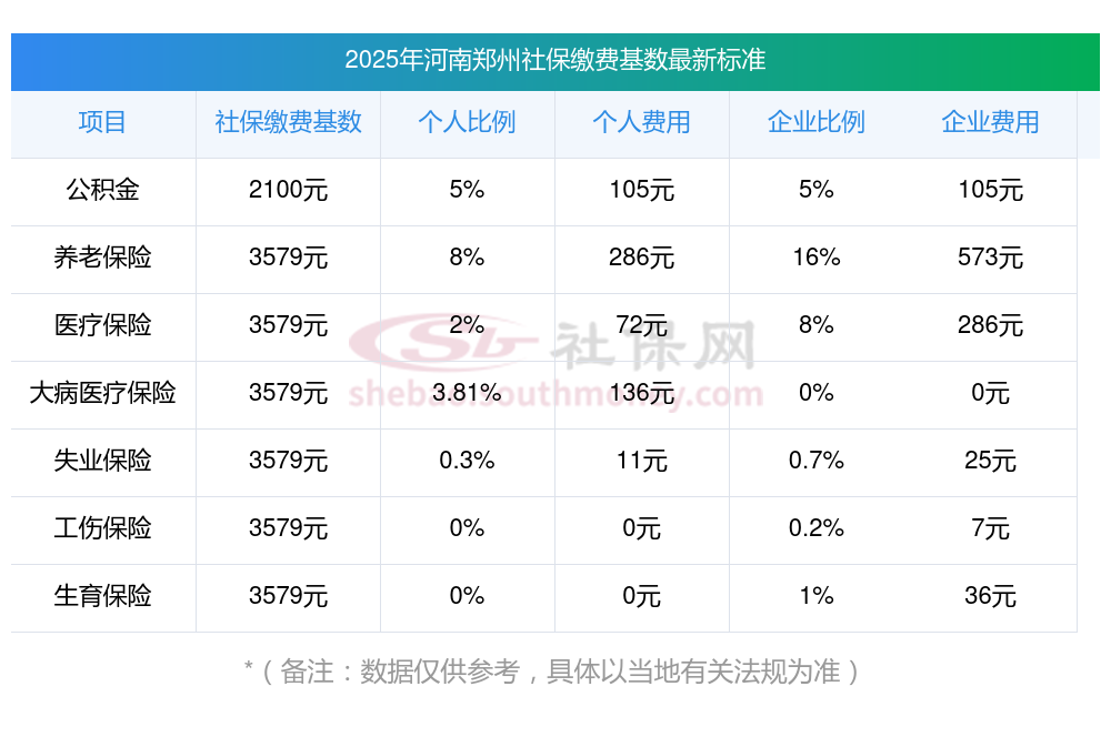 2025河南郑州社保个人缴费最低标准!河南郑州社保交多少钱?据新社通app获悉:河南郑州企业职工社保缴费基数为:3579.00元。