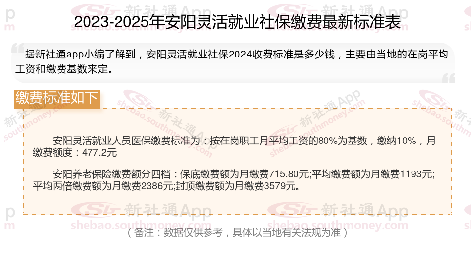 以上就是带来安阳灵活就业社保缴费标准相关知识,内容供参考,希望对你有帮助,欢迎关注/下载新社通app解锁更多社保专业资讯。