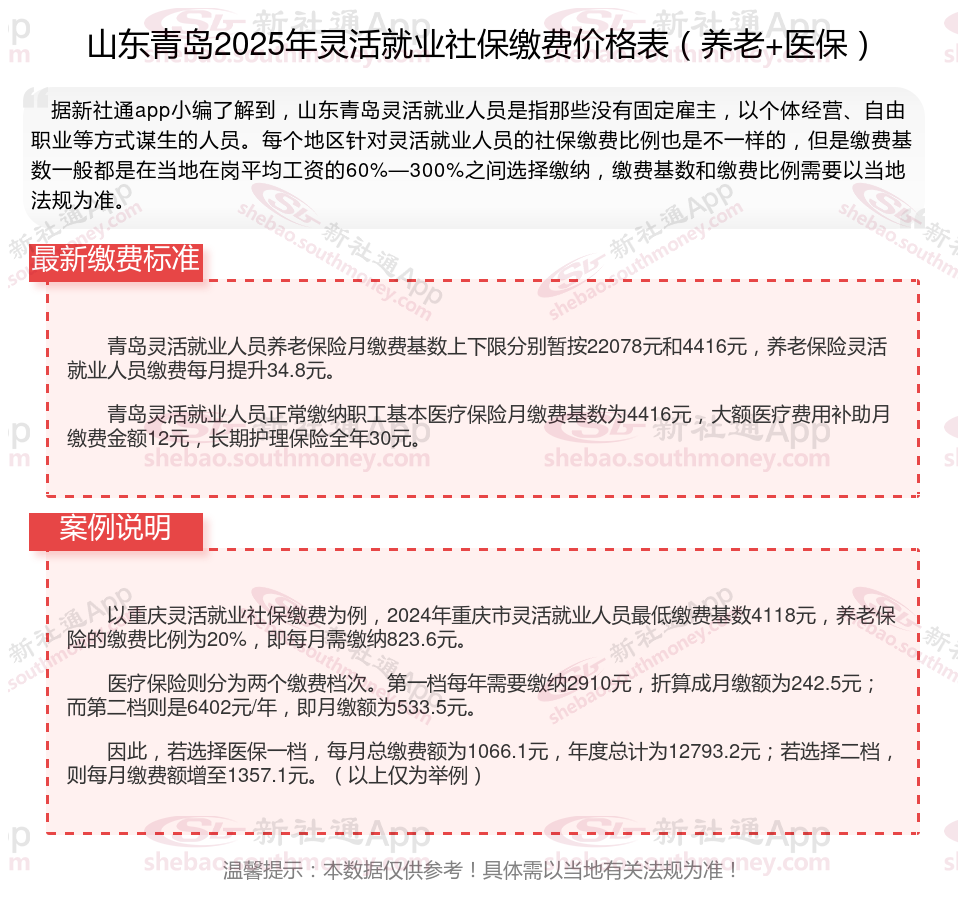 以上就是带来山东青岛灵活就业社保缴费标准相关知识,内容供参考,希望对你有帮助,欢迎关注/下载新社通app解锁更多社保专业资讯。