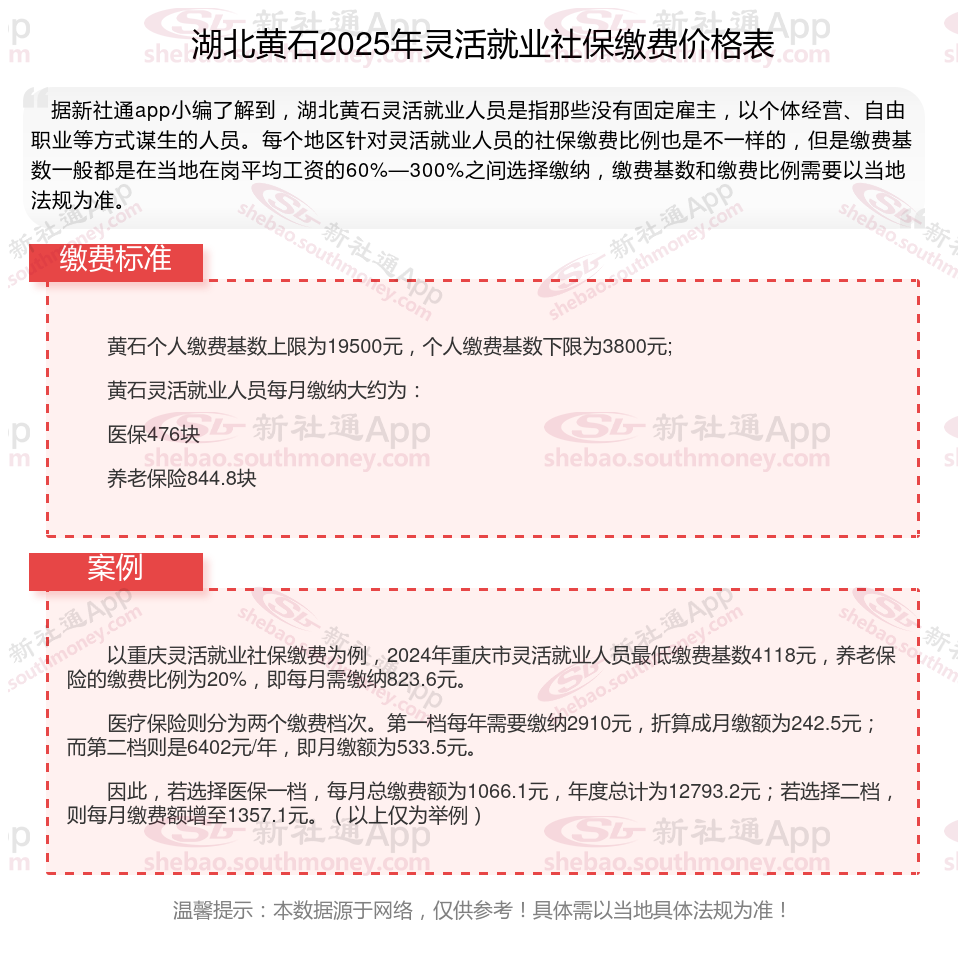 以上就是湖北黄石灵活就业社保缴费的全部内容,数据及内容供参考!希望对你有帮助,欢迎关注新社通app解锁更多社保专业资讯。