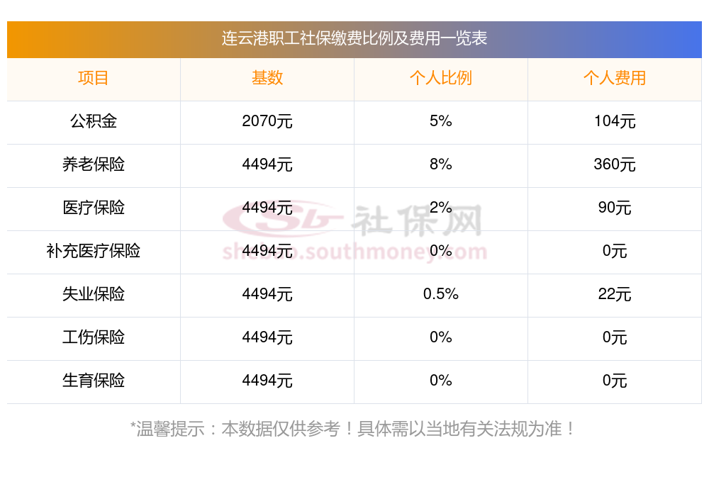 一、连云港职工社保缴费基数是多少钱一个月?职工社保缴纳标准最新如下: