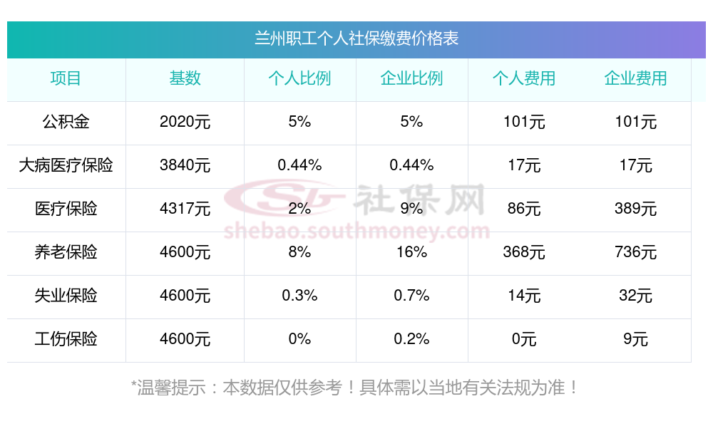 兰州职工社保缴费多少钱?兰州职工社保缴费基数最新参考为:3579.00,具体如下: