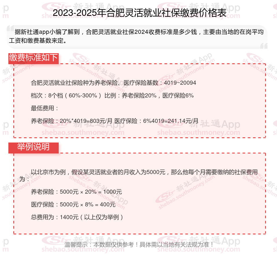 以上就是合肥灵活就业社保缴费的全部内容,数据及内容供参考!希望对你有帮助,欢迎关注新社通app解锁更多社保专业资讯。