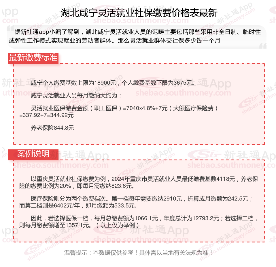 一、2024年湖北咸宁灵活就业社保缴费标准表 湖北咸宁灵活就业社保多少钱一个月?