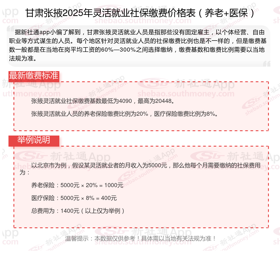 三、2025年甘肃张掖灵活就业社保缴费基数及比例最新消息