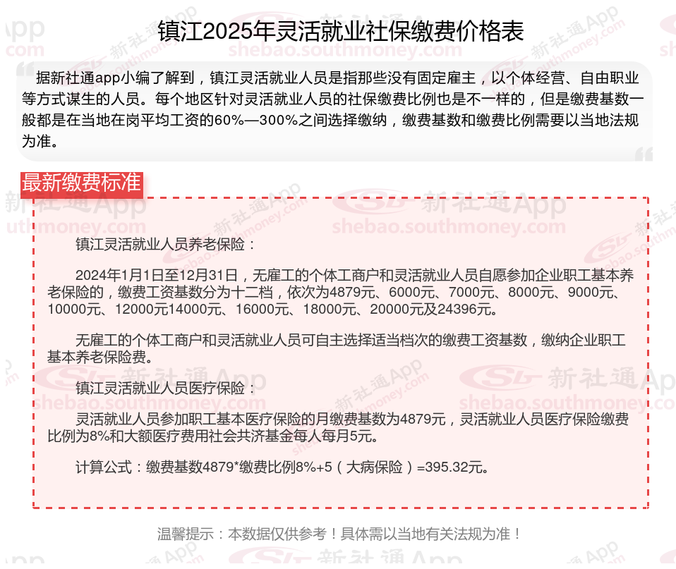二、镇江2024年灵活就业社保缴费基数、比例最新消息