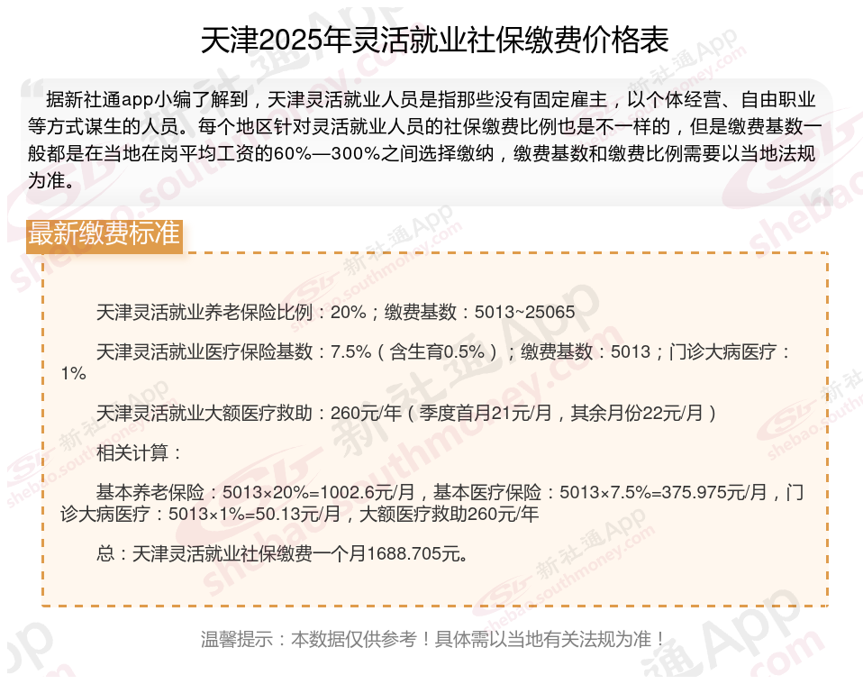 天津灵活就业社保缴费标准表 天津灵活就业社保多少钱一个月?
