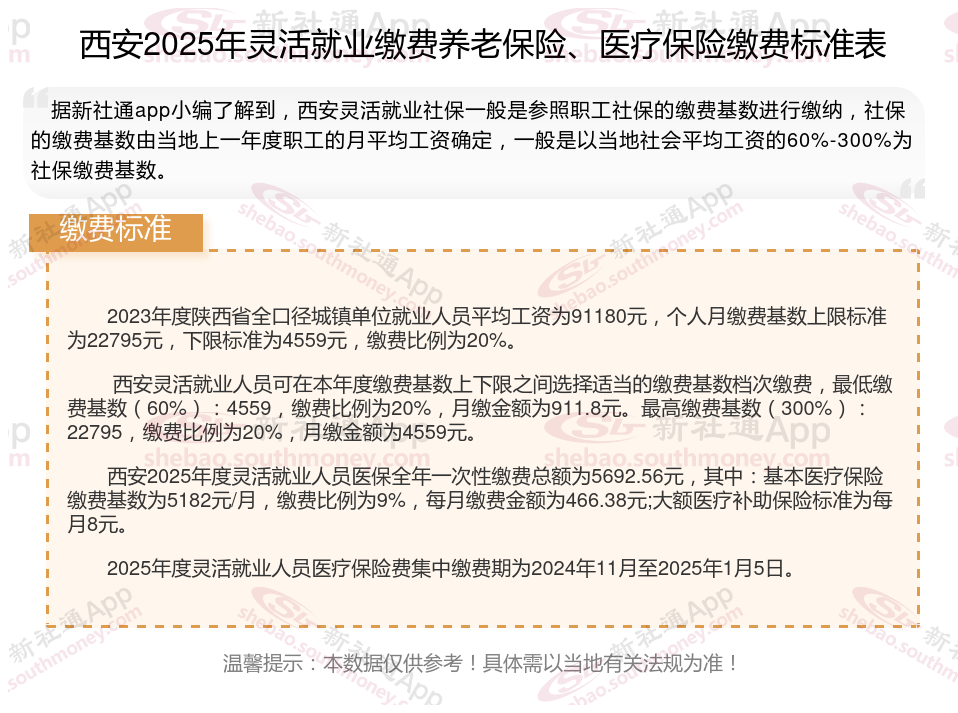 三、2025年西安灵活就业社保缴费标准,最新如下: