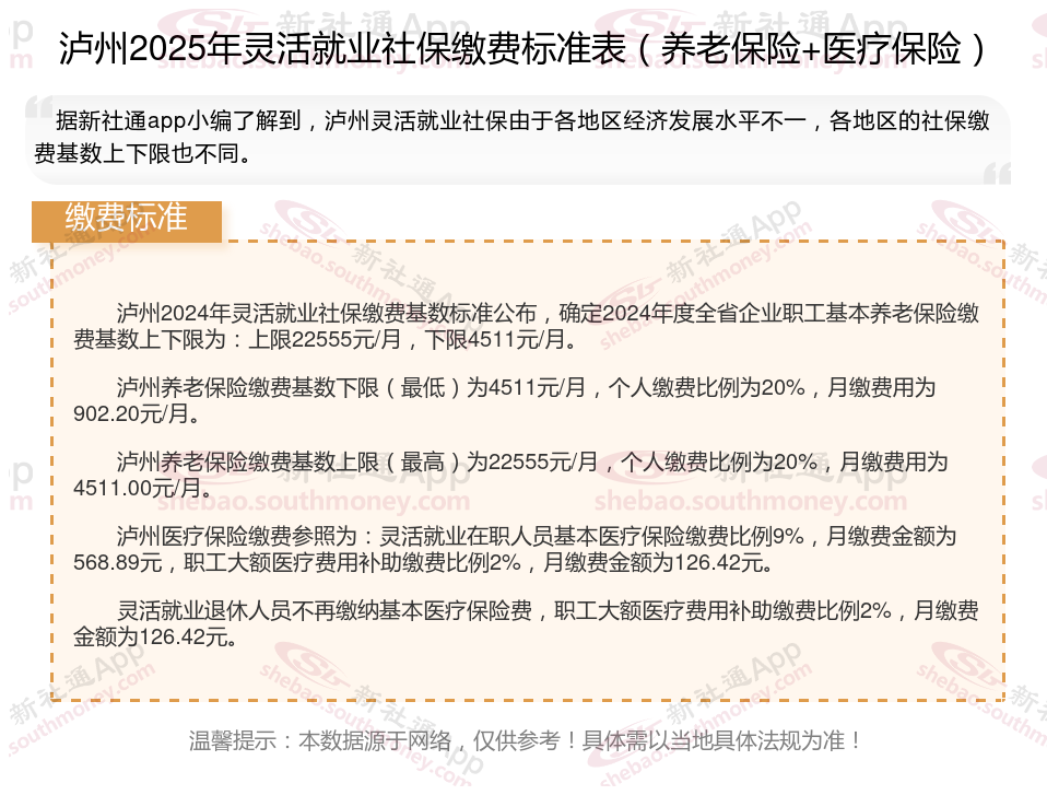 以上就是泸州灵活就业社保缴费的全部内容,数据及内容供参考!希望对你有帮助,欢迎关注新社通解锁更多社保专业资讯。
