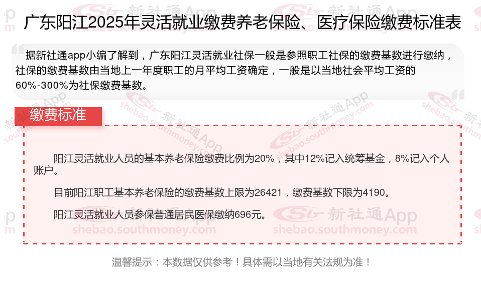 以上就是广东阳江灵活就业社保缴费的全部内容,数据及内容供参考!希望对你有帮助,欢迎关注新社通解锁更多社保专业资讯。