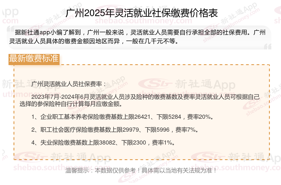 一、2025年广州灵活就业社保缴费标准表 广州灵活就业社保多少钱一个月?