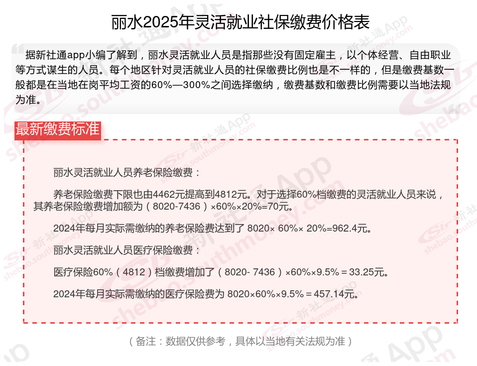 以上就是丽水灵活就业社保缴费的全部内容,数据及内容供参考!希望对你有帮助,欢迎关注新社通解锁更多社保专业资讯。
