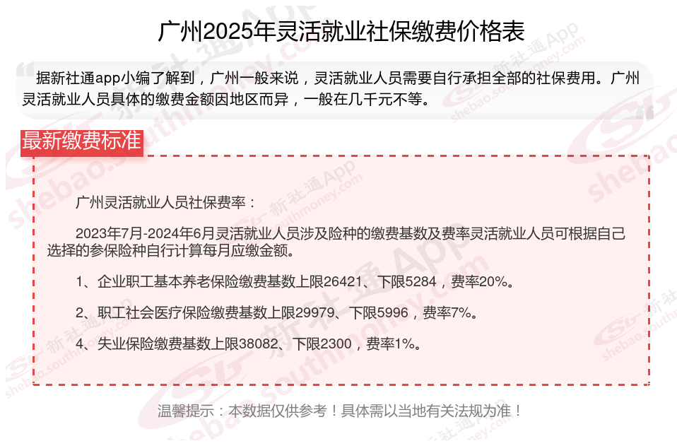 以上就是带来广州灵活就业社保缴费标准相关知识,内容供参考,希望对你有帮助,欢迎关注/下载新社通app解锁更多社保专业资讯。