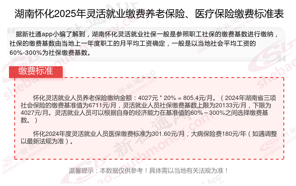 二、湖南怀化2024年灵活就业社保缴费基数及比例最新消息