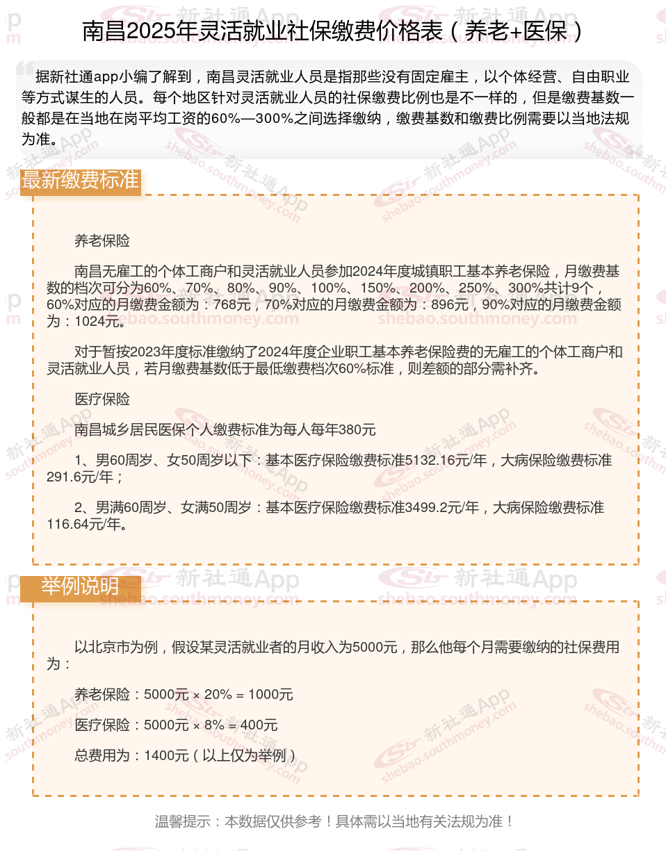 以上就是南昌灵活就业社保缴费的全部内容,数据及内容供参考!希望对你有帮助,欢迎关注新社通app解锁更多社保专业资讯。