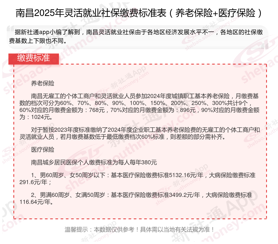 三、2025年南昌灵活就业社保缴费标准,最新如下:
