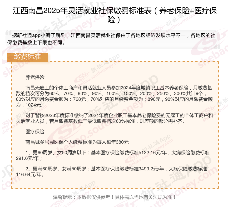 以上就是江西南昌灵活就业社保缴费的全部内容,数据及内容供参考!希望对你有帮助,欢迎关注新社通解锁更多社保专业资讯。