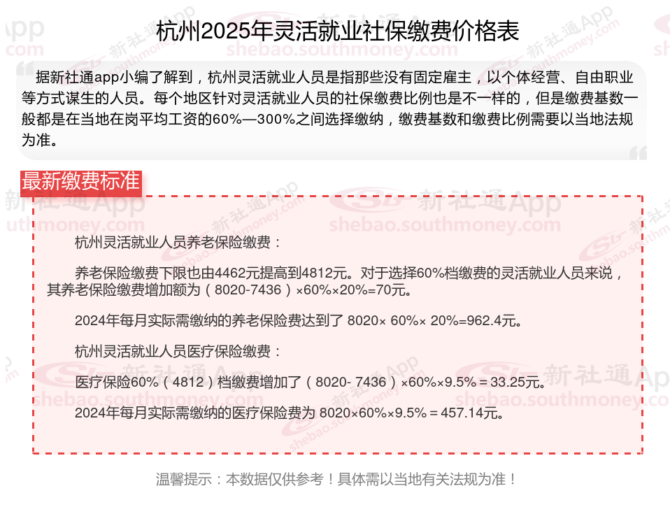 2025年杭州灵活就业人员社保需要交多少钱?随着经济社会的不断发展,灵活就业群体也日益壮大,其社保缴费问题也愈发受到关注。接下来随新社通APP小编一起来看看灵活就业群体社保缴费问题吧。