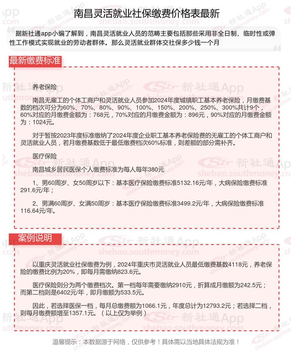以上就是南昌灵活就业社保缴费的全部内容,数据及内容供参考!希望对你有帮助,欢迎关注新社通app解锁更多社保专业资讯。