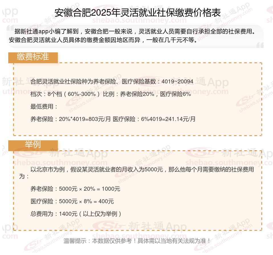 以上就是安徽合肥灵活就业社保缴费的全部内容,数据及内容供参考!希望对你有帮助,欢迎关注新社通app解锁更多社保专业资讯。