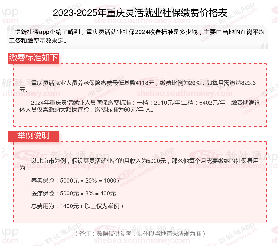 一、2024年重庆灵活就业社保缴费基数、比例最新消息