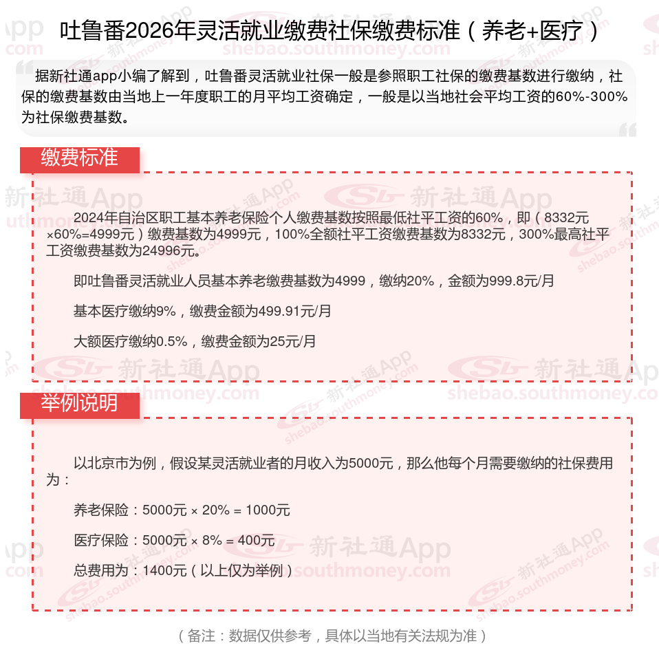一、2024-2025年吐鲁番灵活就业社保缴费标准表 吐鲁番灵活就业社保多少钱一个月?