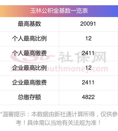 玉林住房公积金的月缴存基数上限是多少?具体是怎么计算的?