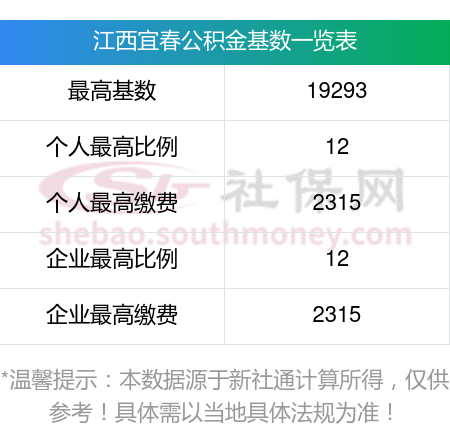 (3)最低月缴存额为宜春为 310元(其中:单位155 元,个人155元)。