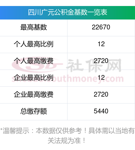 四川广元住房公积金的月缴存基数上限是多少?具体是怎么计算的?