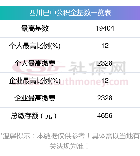 巴中住房公积金缴存基数以职工本人上一年度月平均工资计算。