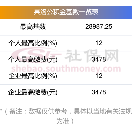 果洛住房公积金的基数上限、下限、比例如下: