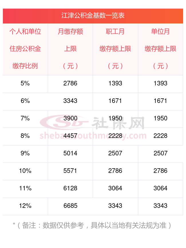 江津住房公积金缴存基数以职工本人上一年度月平均工资计算。
