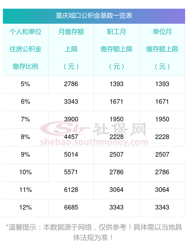 缴存基数下限按照上一年度成都市最低工资标准相关法定,执行以下标准: