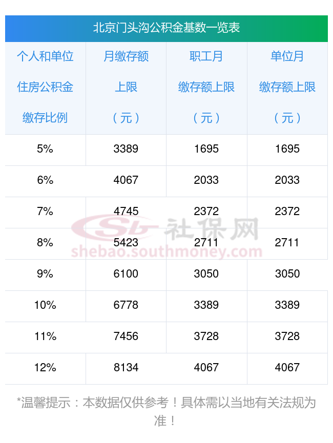 2023年北京公积金缴存基数上限下限对照表,上限比例对比缴存基数表: