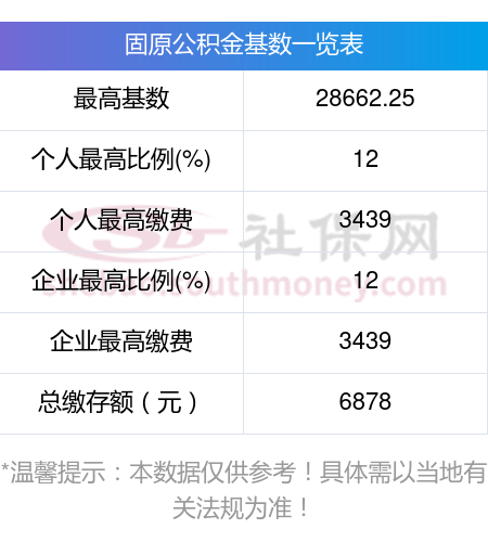 (2)固原最高月缴存额为 6878 元,各缴存比例对应的月缴存额上限,按照《2023 年度住房公积金缴存比例对应月缴存额上限标准》执行。