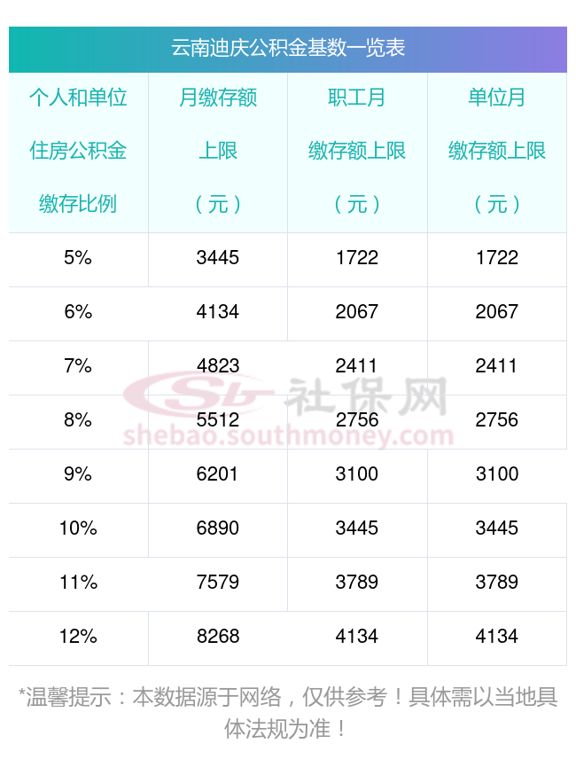 依据迪庆有关部门关于2022年全市城镇全部单位就业人员平均工资的通告中公布的我市城镇非私营单位就业人员平均工资数据,我市住房公积金缴存基数上限标准调整为34448元。