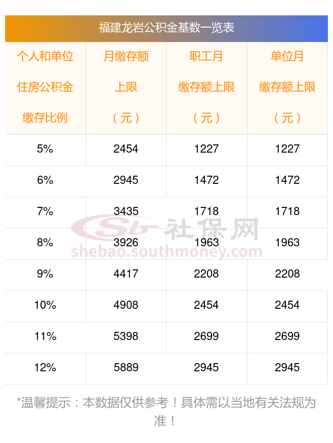 二、福建龙岩住房公积金缴存基数上下限