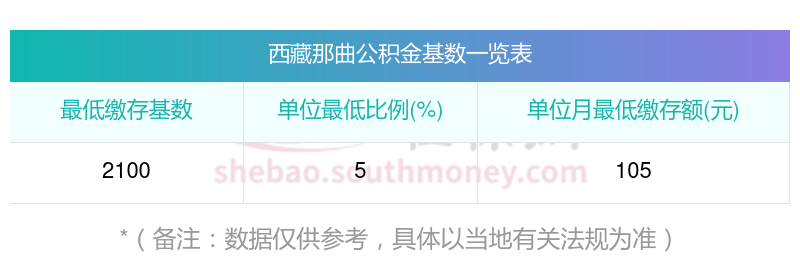西藏那曲住房公积金的基数下限标准如下:
