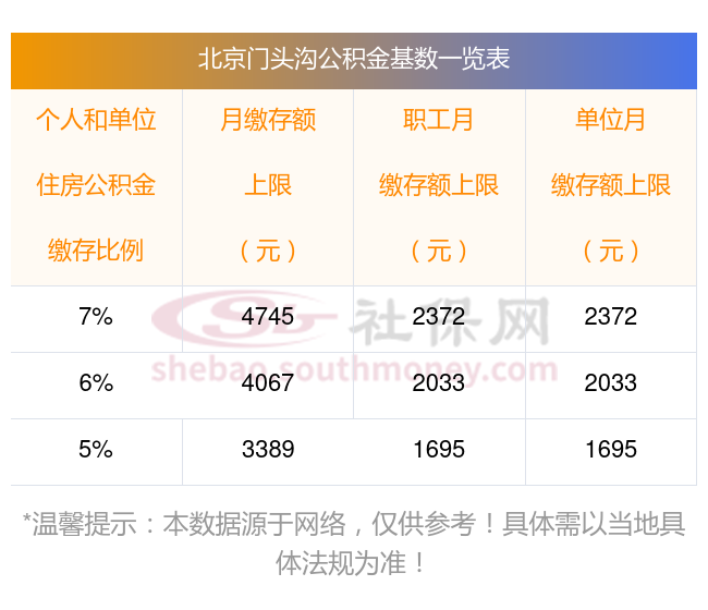 住房公积金的缴存基数,不得超过门头沟市相关部门公布的上一年度职工月平均工资的三倍,不得低于门头沟市劳动和社保部门法定的上一年度职工最低工资标准。