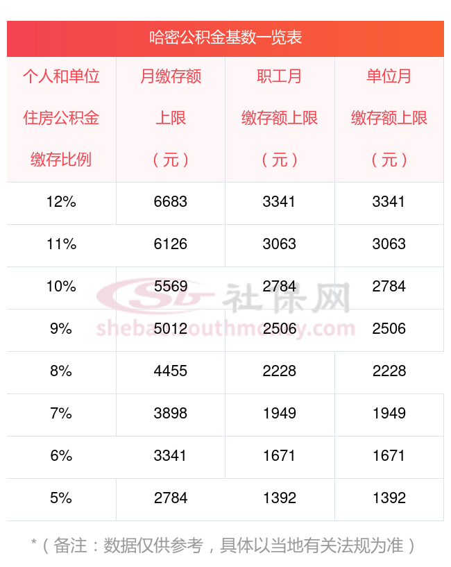 (二)住房公积金月缴存额上限:2023年度哈密住房公积金月缴存额上限为6682元(单位和职工合计)。