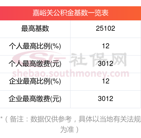嘉峪关住房公积金的基数上限、下限、比例如下: