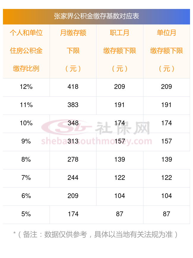 通过北京已经公布的公积金基数计算出不同的缴存比例每月要缴费的费用表: