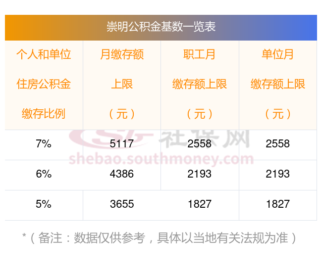 崇明住房公积金缴存基数以职工本人上一年度月平均工资计算。