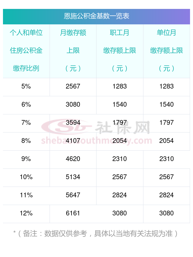 恩施住房公积金缴存基数以职工本人上一年度月平均工资计算。