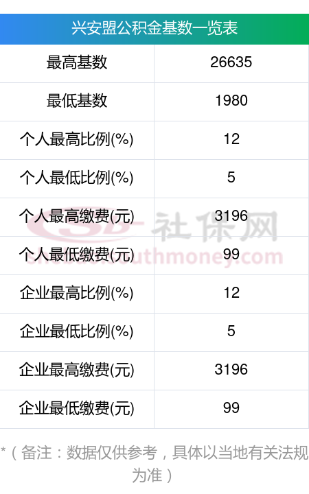 (三)住房公积金月缴存额下限:2023年度兴安盟住房公积金月缴存额下限为198元(单位和职工合计)。