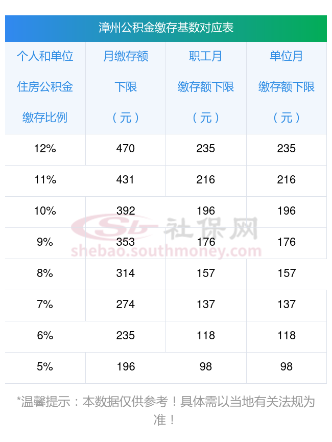 公积金缴存比例是怎么定的?全国统一法定的吗?缴存比例也叫应缴公积金的系数的,缴存比例,一般指住房公积金的缴存比例,就是你应缴公积金的系数,它和本人月平均基数和应缴系数都有关系,平均工资额和系数的增加或减少,应缴公积金的数额都会相应变化。下面跟随社保网小编来了解:漳州的最新公积金缴存比例及可以选择的比例多少种。