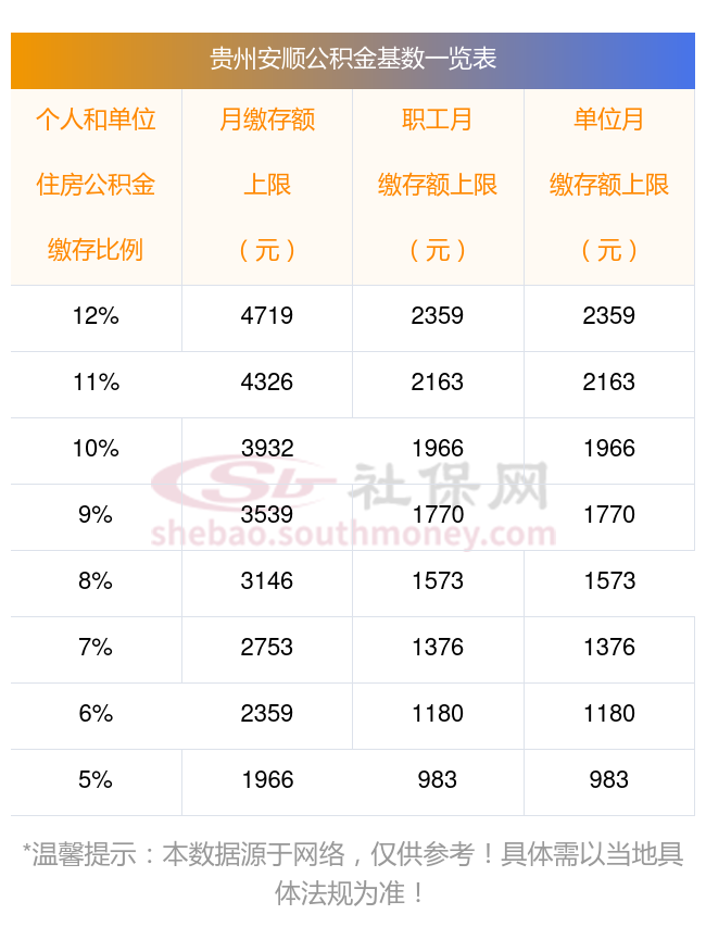 (二)住房公积金月缴存额上限:2024年度贵州安顺住房公积金月缴存额上限为4718元(单位和职工合计)。