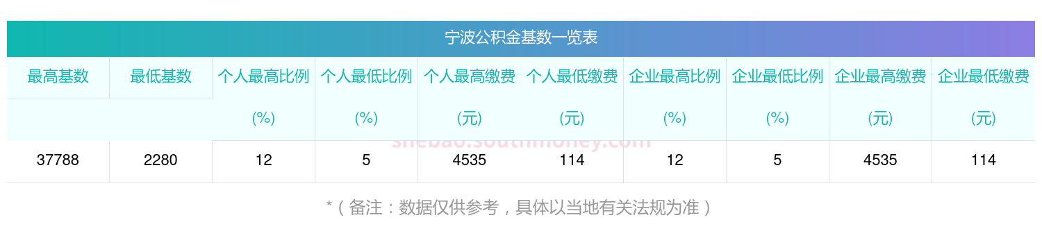 一、宁波缴存基数