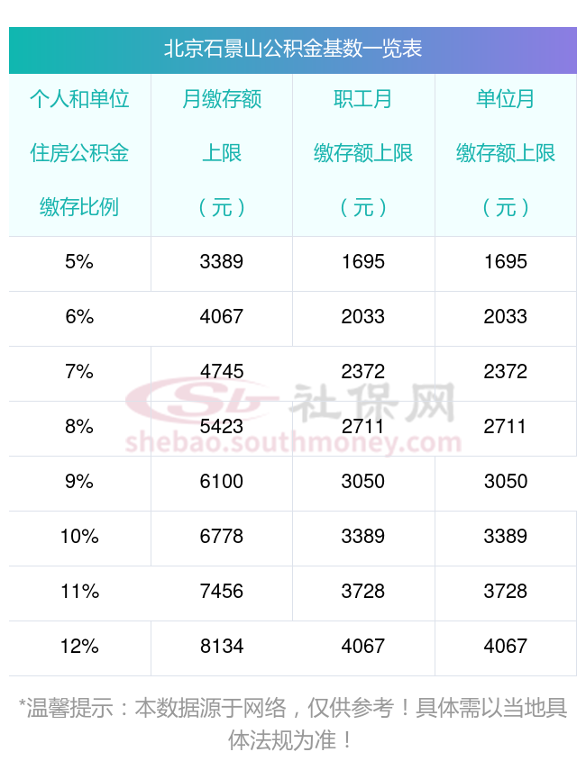 二、北京石景山住房公积金缴存基数上下限